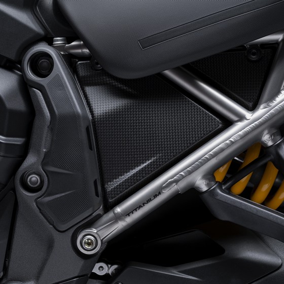 | Výbava | jízdní režimy, ABS Bosch s funkcí brždění v náklonu, Ducati kontrola trakce (DTC), Ducati Wheelie kontrola (DWC),asistent rozjezdů (VHC), adaptivní tempomat, senzor mrtvého úhlu, bezklíčové ovládání Hands-Free, podsvícené přepínače na řídítkách, automatická deaktivace směrových světel, rychlořazení up/down (DQS), Full LED osvětlení s funkcí přisvícení do zatáčky, karbonový přední blatník, karbonové kryty rukojetí, homologovaná koncovka výfuku Akrapovic |